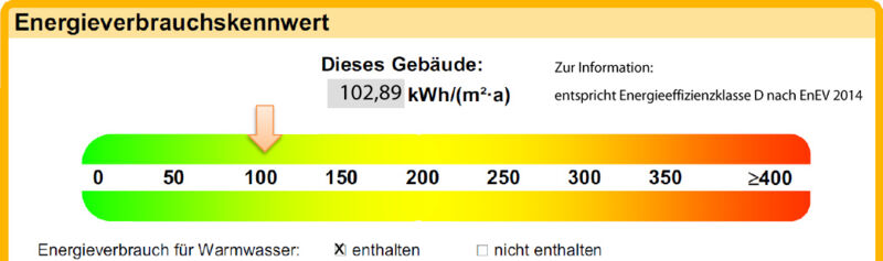 | Energieverbrauchskennwert | 102,89 kWh/(m²a) [inkl. Warmwasser] |