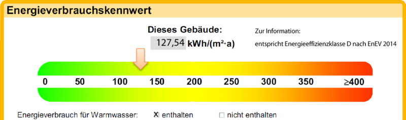 | Energieverbrauchskennwert | 127,54 kWh/(m²a) [inkl. Warmwasser] |